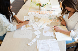 With backgrounds in architecture and fashion design, our two founders work together in California to sketch each print by hand. Once the prints are finalized, they are sent to India where they are intricately hand carved into teak blocks by skilled artisans.